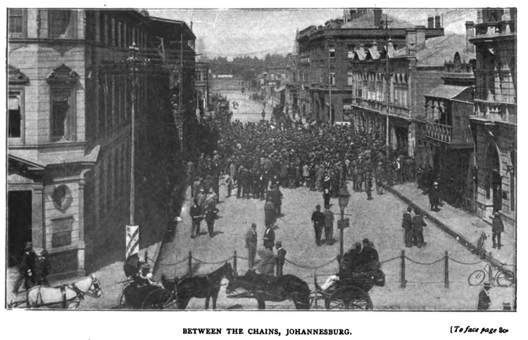 Certain Johannesburgers at the Club had related to us the story of the various efforts they had made to obtain their political rights, and the reforms which were needed to work their mines profitably; and after they had finished, I replied that everyone was well aware of the demonstrations, mass-meetings, speeches, petitions to Kruger, menaces, Jameson’s Raid, and so on, and they themselves had just informed me how often they had yielded to bribery of officials, and yet withal they confessed they were not a whit further advanced. Their position had not been bettered, but was somewhat worse. “The corrective of it all,” I said, “seems to me to lie in the Scriptural verse, ‘it is expedient that one man should die for many.’ There is a vast mass of sympathy in England with you, but it is inert and inactive. To make that sympathy a living force in your behalf, it must be proved that you are in earnest, that nothing sordid lies behind this dissatisfaction. You must prove that you have a cause for which you are willing to suffer, even to the death. You say that you can do nothing without arms. You do not need any arms that I see. If you fight with weapons, you will be overcome, and I do not think your defeat will excite great sympathy. But if it be true that the impositions on you are intolerable, your taxes heavy, the claims of Government extortionate, and the demands excessive, why submit to them? It seems to me that if you were all united in the determination to pay no more of these claims, taxes and bribes, and folded your arms and dared them to do their worst, that Kruger must either yield or proceed to compulsion of some kind. He would probably confiscate your property, or put you in prison or banish you. Whatever he does that is violent and tyrannical will cause such an explosion of opinion that will prove to you all that England does not forget her children. No cause was ever won without suffering, and I am afraid that your cause, however good it may be, cannot be won without sacrifice and suffering of some kind. The leader of any movement is sure to be the object of a tyrant’s hate, and the leader or leaders of your cause ought not to venture in it without being prepared to suffer and endure whatever ills may follow.”
