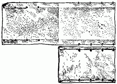 The first summer I spent in the Sierras I discovered that small noon showers needed neither tent nor slicker. So next year I left them home, and was, off and on, plenty wet and cold. Immediately I jumped to the conclusion that I had made a mistake. It has not rained since. So I decided that sporadic heavy rains do not justify the transportation of two cumbersome articles. Now when it rains in daytime I don't mind getting a little wet—for it is soon over; and at night an adequate shelter can be built of the tarpaulin and a saddle blanket. In other words the waterproofs could not pay, in the course of say three-days' rain in a summer, for the trouble of their transportation during four months.