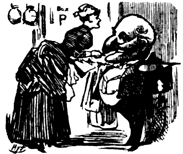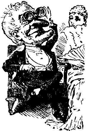 The popular editor of the "Nursery," whose unrivalled knowledge of children causes him to be referred to everywhere as our greatest playwright, is a little at sea in his latest play, Rattles. In the first act he rashly introduces (though by this time he should know his own limitations) two grown-ups at lunch—Mr. Jones the father, and Dr. Brown, who discuss Johnny's cough. Now we would point out to Mr. Crouper that men of their[Pg 26] age would be unlikely to have milk for lunch; and that they would not say "Yeth, pleath"—unless of Hebraic origin, and Mr. Crouper does not say so anywhere. Mr. Crouper must try and see something of grown-ups before he writes a play of this kind again.