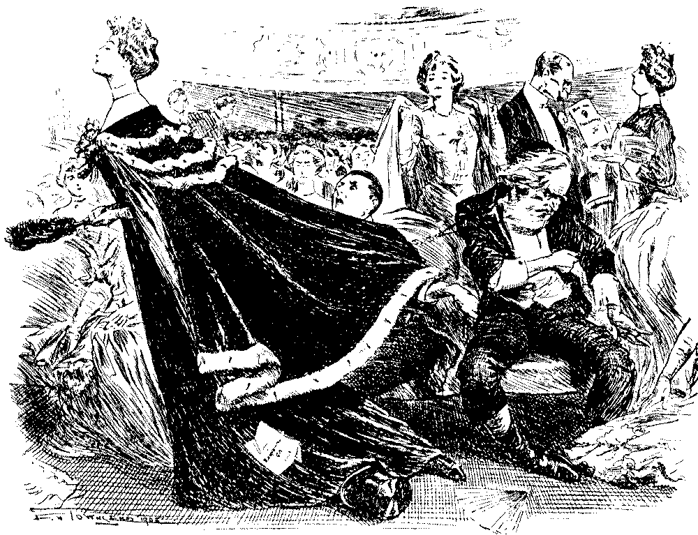 Lady in Front Row (to her neighbour, towards the end of the second act). "Who is this man next me, who's just come in,—do you know? He doesn't seem to be paying the smallest attention to the play!"