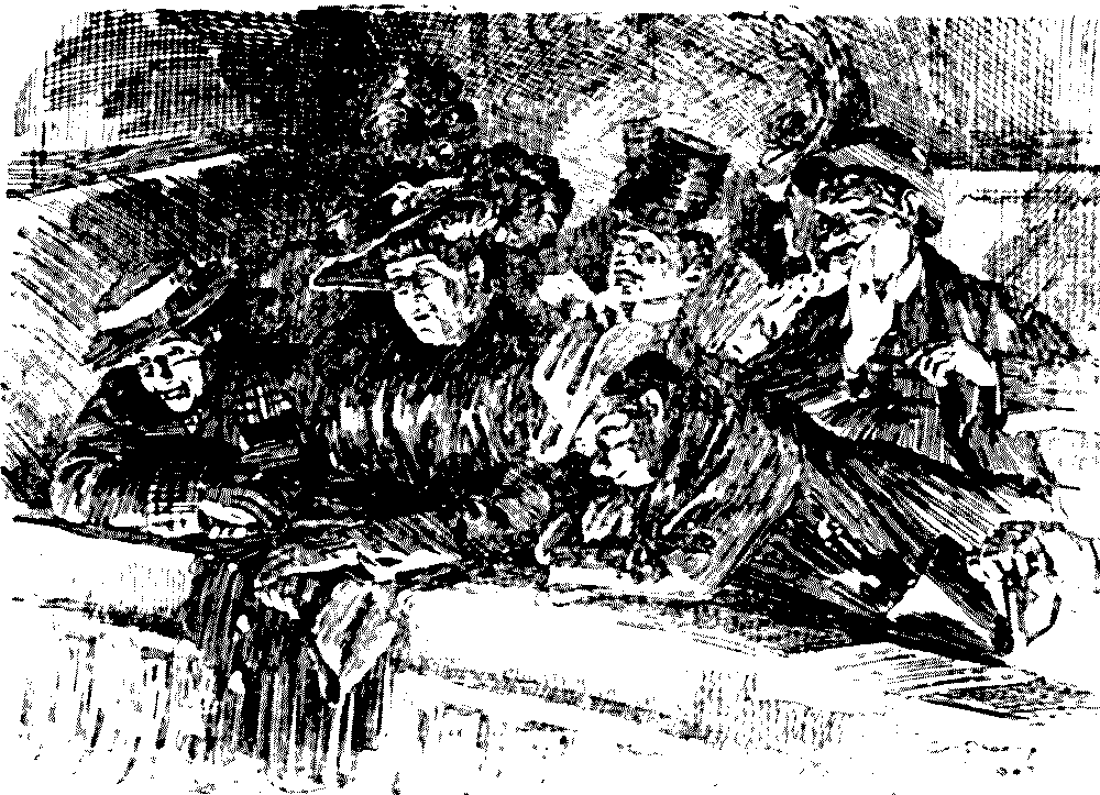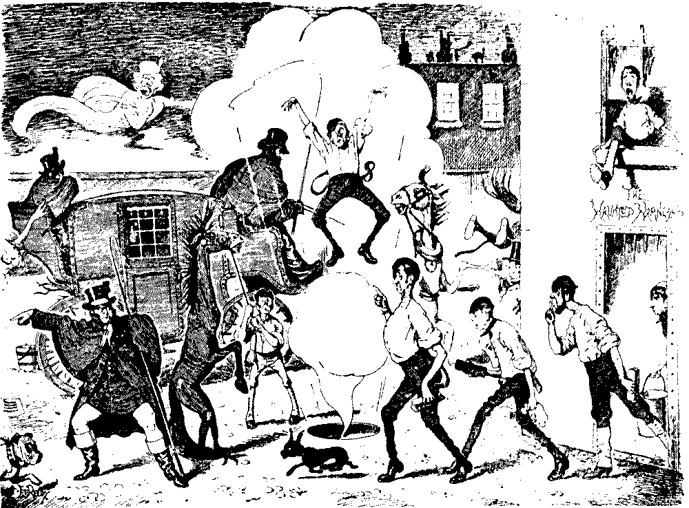 "'Ere, I say, 'Liza, we've seen this 'ere play before!" "No, we ain't." [Wordy argument follows.] "Why, don't you remember, same time as Bill took us to the 'Pig an' Whistle,' an' we 'ad stewed eels for supper?" "Oh lor! Yes, that takes me back to it!"