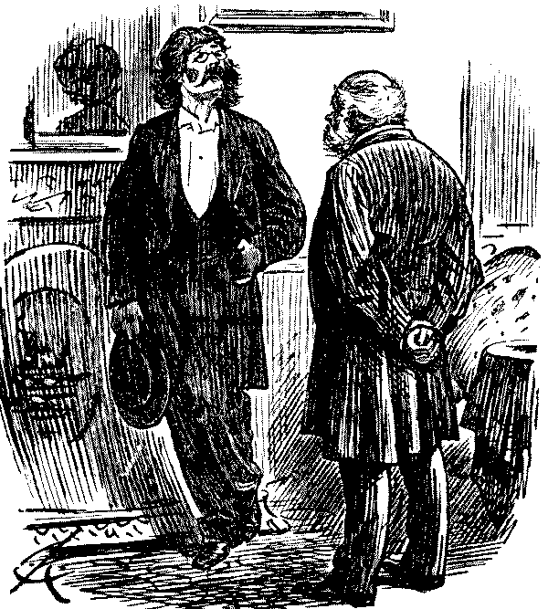 Indignant Playwright (to leading actor, behind the scenes). "Confound it, man, you've absolutely murdered the piece!" Leading Actor. "Pardon me, but I think the foul play is yours!"