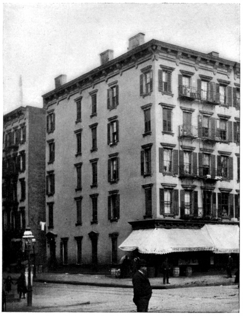 The Fourth Ward criminal and health records figure for an even longer period in every effort at bettering municipal conditions by the example it presented of civic indifference, neglect and maladministration. The houses faced on two alleys, known in their best days as "Single" and "Double" alley, respectively. As this distinction indicates, on Single Alley one row of houses faced the walls of the adjoining property, while two rows of houses faced each other across Double Alley. Later known as Swipe's Alley, Guzzle Row, Hell's Kitchen, Murderers' Row, showing the gradual descent from respectability. There is a tradition that Single Alley once had gardens that extended to Roosevelt Street; that the houses had been occupied by one family; but this cannot be verified. In their most degenerate days these houses had an air of exclusiveness, due doubtless to their fronting[Pg 4] on courts and the tall iron fences, with gates, that separated the houses from the street. The neighborhood at one time was aristocratic; Franklin Square, but a short distance from the property, was a social center of national greatness. As business went northward, the merchants, bankers, tradespeople, followed, for the tie between home and business was still very close; the midday dinner made distance between the two impossible. The old homes were left for subdivision among the skilled workmen and clerks.