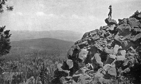 Figure 1. An observation point for finding forest fires. Vigilance is the watchword on the National Forests. During 1916 forest officers extinguished 5,655 forest fires. Photo by the author
