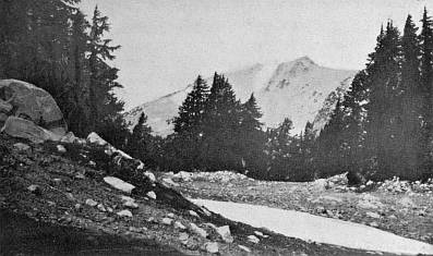 Figure 4. On many high mountains on the National Forests snow banks persist throughout the summer. This view was taken in the latter part of August. Lassen National Forest, California. Photo by the author.