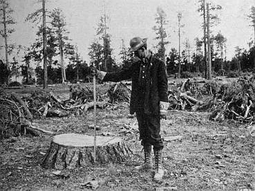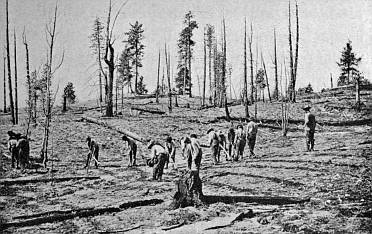 Not only is this a great achievement in itself, but few people realize what the solution of the National[xi] Forest problem has meant to the millions of people who live near them; what it has meant to bring civilization to the great forested empire of Uncle Sam; what it has meant to change from a condition of unrestricted, unregulated misuse with respect to the public domain, to a policy of wise, regulated use, based upon the principle of the greatest good to the greatest number in the long run. In the early days before the Forest Service organization became established, the people were said to have "shot-gun titles" to timber or grazing lands on the public domain, and "might made right" in the truest sense of the word. This crude condition of affairs gave way to wise, conservative use under government control. Just as the farmer each year sets aside a certain amount of his seed for next year's planting, just so the stockman saves his calves and cows and lambs for greater growth and each year sees a part of his herd maturing for market, and just so the forester, under the new system, cuts only the mature trees and allows the young timber to remain for greater growth and greater value in the future, or, in the absence of young trees, plants small trees to replace those removed.