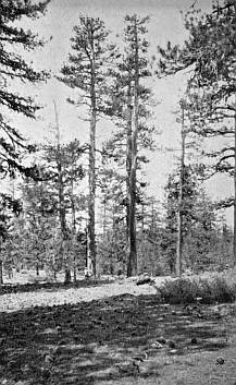 [xxii] This National Forest empire presents a great variety of scenery, of forest, and of topography. The beautiful white pine forests of Idaho and Montana, the steep pine- and spruce-clad granite slopes of the Colorado Rockies, and the sun-parched mesas of the Southwest, with their open park-like forests of yellow pine, all have their individual charm. And after crossing the well-watered Cascades and Sierra Nevadas we find forest scenery entirely different. The dense, luxuriant, giant-forests of the coast region of Oregon and Washington, bathed in an almost continual fog and rain, are without doubt the most wonderful forests in the world. And lastly, California, so far as variety of forest scenery is concerned, has absolutely no rival. The open oak groves of the great valleys, the arid pine- and oak-covered foothills, the valuable sugar pine and "big-tree" groves of the moist mountain slopes, and the dwarfed pine and hemlock forests near the serrated crest of the Sierras, all occur within a comparatively short distance of each other, and, in fact, may be seen in less than a day on any one of the many National Forests in these mountains.