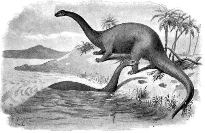 The object of this book is to describe some of the larger and more monstrous forms of the past—the lost creations of the old world; to clothe their dry bones with flesh, and suggest for them backgrounds such as are indicated by the discoveries of geology: in other words, to endeavour, by means of pen and pencil, to bring them back to life. The ordinary public cannot learn much by merely gazing at skeletons set up in museums. One longs to cover their nakedness with flesh and skin, and to see them as they were when they walked this earth.
