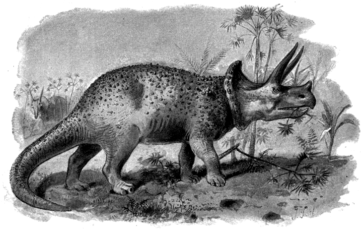 A GIGANTIC HORNED DINOSAUR, TRICERATOPS PRORSUS.