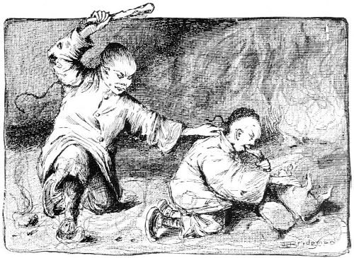 Bo-bo, whose scent was wonderfully sharpened since morning, soon raked out another pig, and fairly rending it asunder, thrust the lesser half by main force into the fists of Ho-ti, still shouting out, "Eat, eat, eat the burnt pig, father, only taste—O Lord,"—with such-like barbarous ejaculations, cramming all the while as if he would choke.