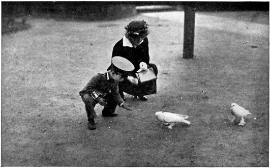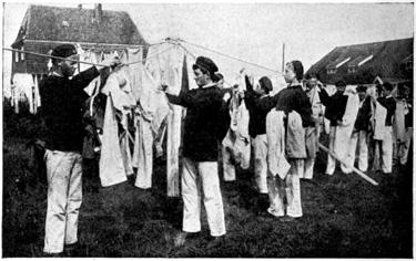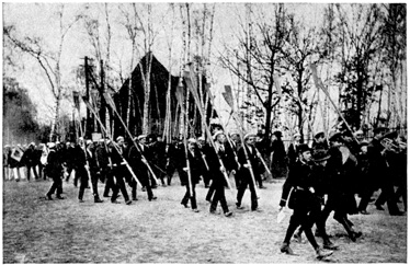 The drilling-grounds for soldiers are very interesting. Most of these places are inclosed, but the one at the Grunewald was open, and I often used to go there to see the soldiers. It made a wonderful picture—the straight rows of drilling men with the tall forest for a background. The men were usually divided off into groups, a corporal taking twelve men to train. It was fun watching the new recruits learning the goose-step. The poor fellows tried so hard they looked as though they would explode, but if they did not do it exactly right, they were sent back to do it over again. The trainers were not the least bit sympathetic.