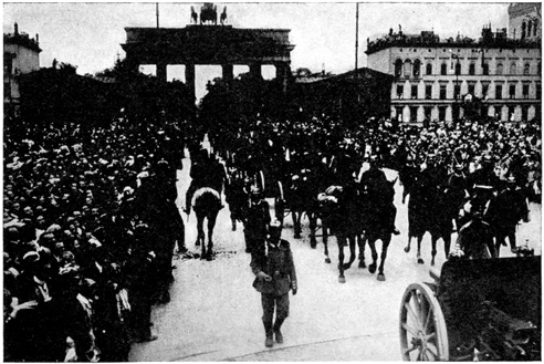 Berlin is a city of soldiers. Every day is soldiers' day. And on Sundays there are even more soldiers than on week days. Then Unter den Linden, Friedrichstrasse and the Tiergarten are one seething mass of gray coats—gray the color of everything and yet the color of nothing. This field gray blends with the streets, the houses, and the walls, and the dark clothes of the civilians stand out conspicuously against this gray mass.