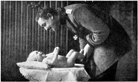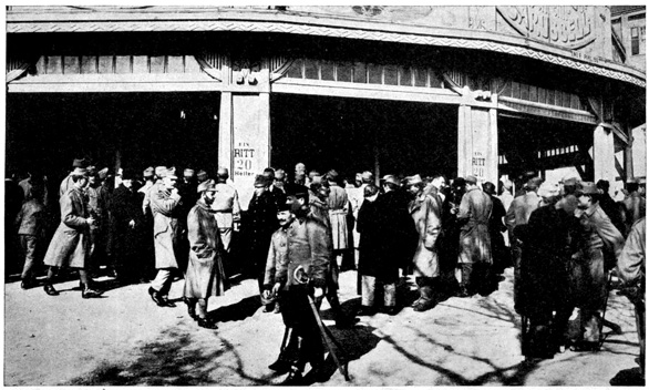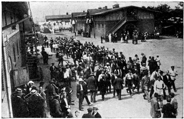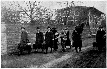 A little child, perhaps three years old, was being held over the gate near me and all the while he kept yelling, "Papa! Urlaub!" An Urlaub is a furlough, and when the father did come at last the child screamed with delight. Another soldier was met by his wife and a tiny little baby. He took the little one in his arms, and the tears rolled down his cheeks, "My baby that I have never seen," he said.