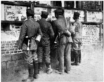 German men have never been noted dressers, and even at their best the middle and lower classes look very gawky and countrified in civilian clothes. You cannot imagine how the uniform improves their appearance. I have seen new recruits marching to the place where they get their uniforms. Most of them have on old ill-fitting clothes, slouch hats and 10 polished boots. They shuffle along, carrying boxes and bundles. They have queer embarrassed looks on their faces. Three hours later, this same lot of men come forth. They are not the same men. They have a different fire in their eyes, they hold themselves straighter, they no longer slouch but keep step. The uniform seems to have made new men of them. It should be called "transform," not uniform.