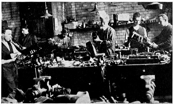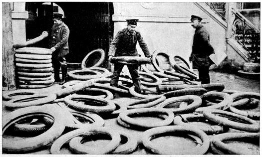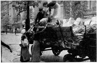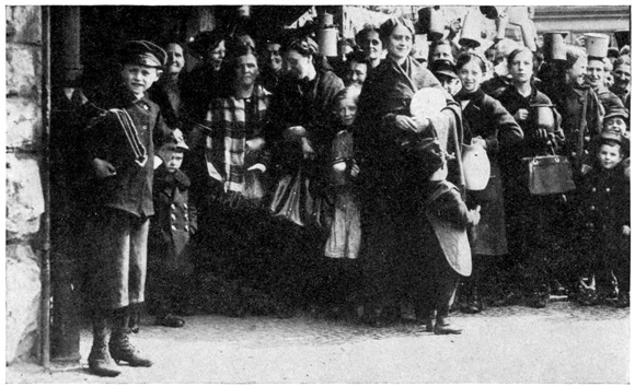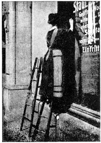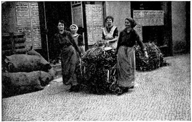 When the war first broke out, women were taken on as ticket punchers on the overground and underground railways, and Frau Kneiperin, or "Mrs. Ticket-puncher," sits all day long out in the open, punching tickets. In summer this job is very pleasant, 22 but in winter she gets very, very cold even if she does wear a thick heavy overcoat and thick wooden shoes over her other shoes. She can't wear gloves for she must take each ticket in her hand in order to punch the stiff boards. She earns three marks a day.
