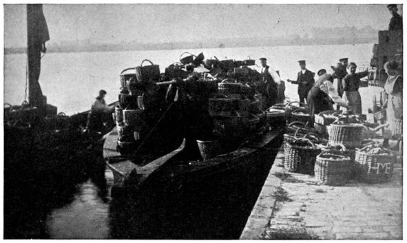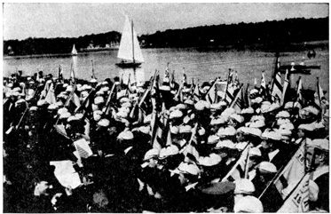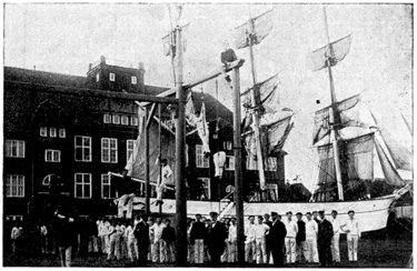 On the boat I had to have my baggage searched again by the Danish officials, but this was merely 297 a farce, for they knew well enough that nobody was trying to export anything out of Germany. The dinner on the Warnemünde boat was wonderful—everything possible and without a card. We all sat down and ate and ate and ate. After dinner, lovely girls came around selling the most wonderful strawberries. But when we were out about an hour the sea got very rough. Afterwards we left the boat and boarded a train on the island. Before the train started we all stood in the corridor of the train looking at the boat we had just left. It was all spattered down the sides with red. Our thoughts were all the same, and then in the silence, the piping voice of a little German girl was heard, "Wie schade um die Erdbeeren!" And we all echoed her thoughts, "Too bad about the strawberries."