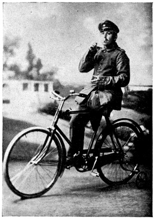 Frau Briefträgerin is the woman letter carrier. This is rather a nice job, carrying only a little bag of letters. One fault with the work is that she must deliver the letters to the top floor of every building whether there is an elevator or not, but as no German building is more than five stories high, it is not so bad. Most of the special delivery "boys" are women. They wear a boy's suit and ride a bicycle.