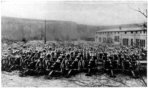 Tempelhof, the largest drilling-ground in Berlin, is the headquarters for the army supplies, and here 15 one can see hundreds of wagons and autos painted field-gray. The flying-place at Johannisthal is now enclosed by a fence and is so well guarded you can't get within a square of it.