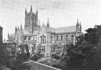 Gloucester Cathedral stands on a site consecrated to religious purposes since the seventh century. The church was raised to cathedral dignity in 1541, having previously been included in the diocese of Worcester. In its present form the body of the church is the work of Abbot Serlo at the end of the eleventh century; but this Norman core was most skilfully altered and recased, chiefly in the fourteenth century, and in general external appearance is thoroughly Perpendicular.