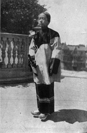 CHUNG GOY ran as fast as his little sandals would permit, up the narrow flight of steps which led to the Chinese restaurant, and out on the balcony, where a crowd of Chinamen were watching for the great Procession of the Dragon. His little legs were encased in pale green silk trousers tied at the ankles, and his lavender shom (blouse) gleamed in the light of the many dragon lanterns which were swaying in the night breeze. His hair was in a long queue, and on his head he wore the little round black cap of the Chinese, with a button on top.