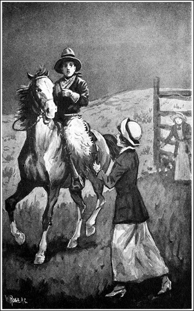 “Hush!” cried Tavia, suddenly. “Methinks I hear footsteps approaching on horseback.”
