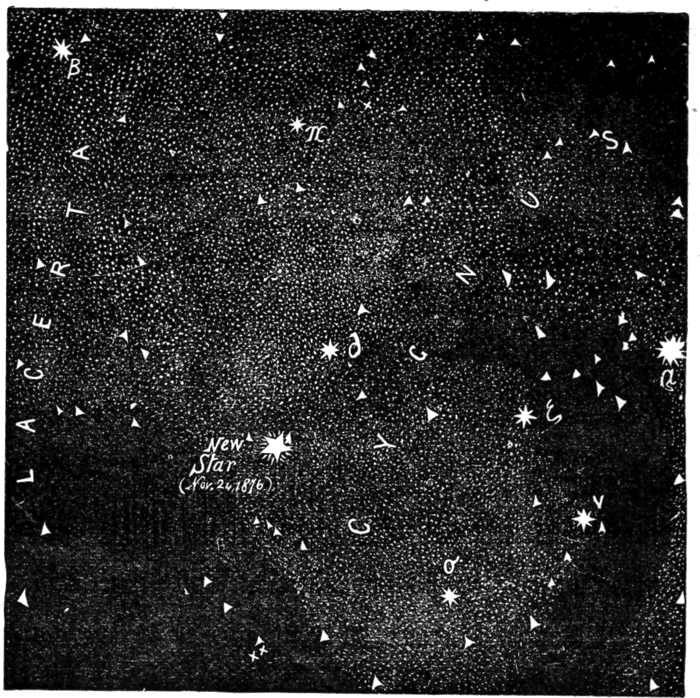 Another step leads us to a standpoint whence we can form a correct estimate of the vast distance of the fixed stars; for we learn that so enormous is the distance of even the nearest fixed star, that the tremendous space separating the earth from that star sinks in turn into the merest point, insomuch that if a globe as bright as the sun had the earth's orbit as a close fitting girdle, then this glorious orb (with a diameter of some 184,000,000 of miles) would look very much smaller than such a globe as our earth would look at the sun's distance—would, in fact, occupy but about one-fortieth part of the[21] space in the sky which she, though she would then look a mere point, would occupy if viewed from that distance.