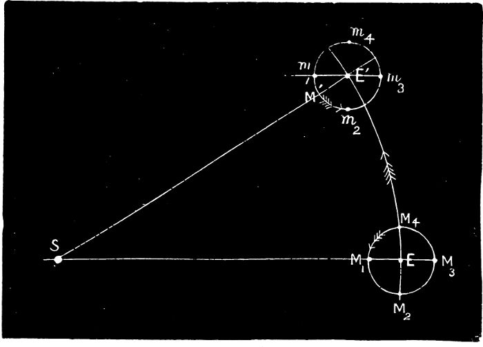 second (a velocity still far beyond our powers of conception), there would be no believing what we should see, for every star, and our own sun, and all the planets, and even our own companion planet, the moon, would be thrown in appearance very far from their true positions. If they were all shifted in position by the same amount and in the same direction the picture would still be true, in a sense, just as we see a true picture of an object at the bottom of a clear lake, though the picture is displaced by the refractive action of the water on the rays of light. But, in the imagined case, the sun, and moon, and planets, and stars would be shifted by different amounts and in different ways, simply because they are moving at different rates and in different directions. The scene presented to us would have been utterly untrue. Astronomy as a science could probably have had no existence in such a case. Assuredly it could have had no existence until students of the heavenly bodies had learned to accept as the first axiom of their science the doctrine that "Seeing is not believing."