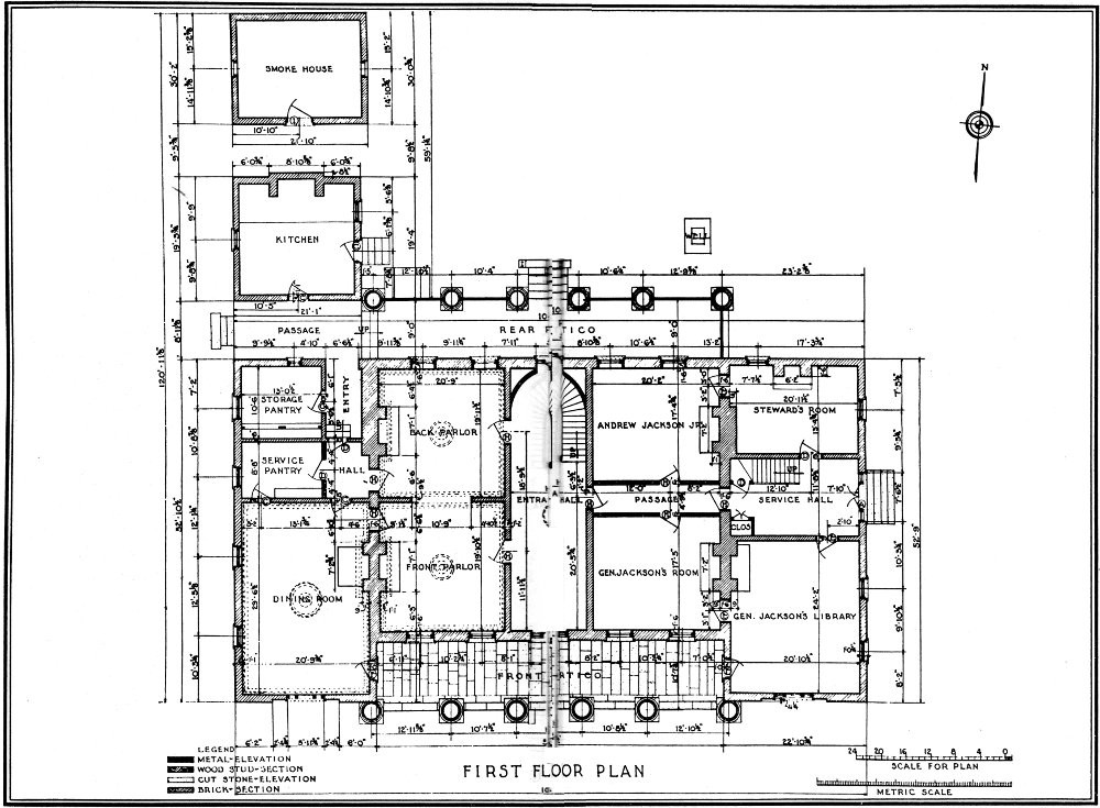 Acknowledgment is made to the association for their permission to use the photographs of the interior of the Hermitage, to which they have the exclusive right. Other photographs are used by permission of Marvin Wiles, photographer, of Nashville, to whom the copyright belongs. The architectural drawings were furnished by the Library of Congress, Washington, having been prepared by the Historic American Buildings Survey.