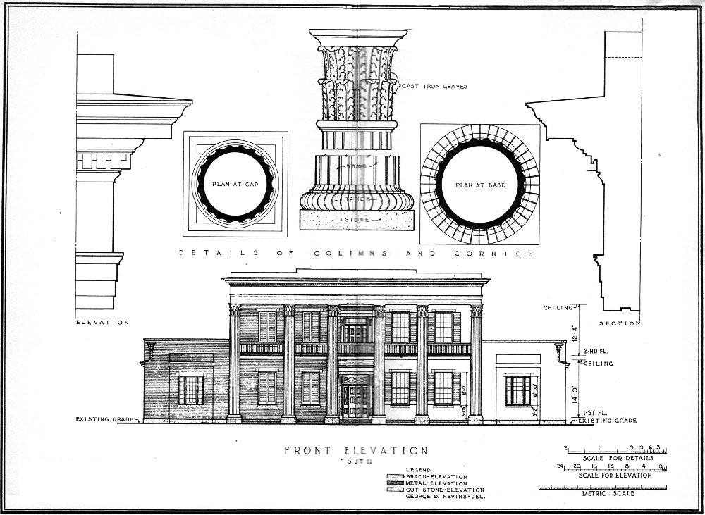 Front view of the Hermitage, home of Old Hickory.
