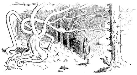 Through briars and bushes, over prickly plants and vines that are laced together like a tangled mass of serpents in the innermost recesses of deep chasms and black ravines, he stumbles toward the Unseen. When his emotions have abated he finds himself alone in the heart of a forest, where trees are so thickly crowded that the air is dense and hard to breathe.