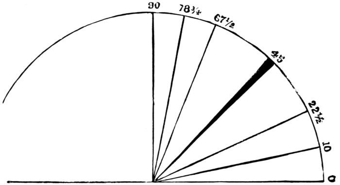 Architects, in their plans for modern mansions, should make suitable provision for this amusement, without which no gentleman’s establishment (more especially if a country one) can now be considered perfect. Even if the builder of a house has no taste for the game himself, he should look beforehand, and consider that such an accommodation might form an important item in the price which a succeeding tenant would be willing to pay for it. The light, if possible, should come from above, through ample skylights, so as to bring the table within a general focus, and thus prevent any shadow being thrown from the balls or cushions. The gas-light should be 10raised about three feet two inches from the bed of the table and supplied with horizontal burners, as by such an arrangement no shadow is cast from the pipe. The distance of the light from the floor should be about 6 feet 1 inch. For a 5 × 10 table the cross-arms of the pendant should measure from light to light 28 inches, and the long arms 56 inches. For a 4½ × 9 table, cross-arms 25 inches, and long arms 50 inches. For a 4 × 8 table, cross-arms 22 inches, and long arms 44 inches. For a 5½ × 11 table, cross-arms 31 inches, and long arms 62 inches. A useful shade has been devised which throws a soft, even light on the table, and keeps the glare from the player’s eyes. The floor, if carpeted at all, should be covered with some thick, soft material.