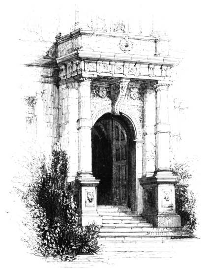 The approach to Holland House is by an avenue of venerable elms; the entrance-gates are examples of wrought iron, remarkably elegant in design and fine in execution. Within the demesne, small although it be, all sense is lost of proximity to a great city: the close foliage completely shuts out the view of surrounding houses, and the birds are singing among the branches, as if enjoying the freedom of the forest. Yet Holland House is now enclosed on all sides—north, south, east, and west—by brick houses of all sorts and sizes, upon which it seems to look down, from its elevated position, with supreme contempt for the convenient “whimsies” of modern architects.