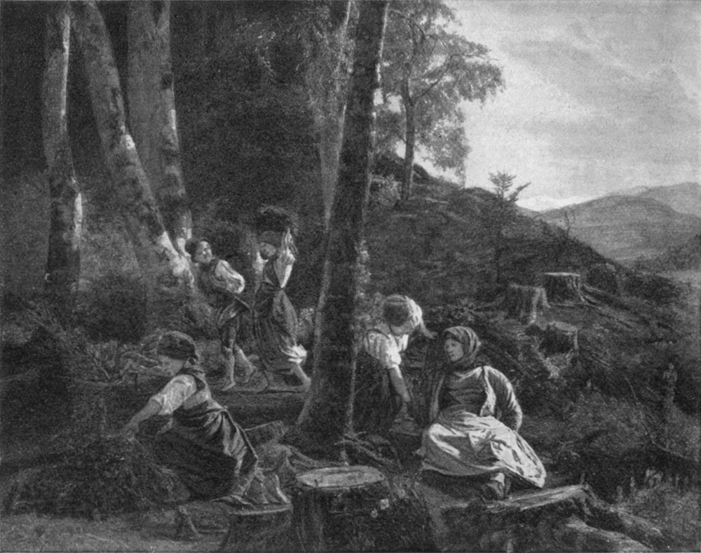 Gerne malte er den Frühling und den jungen Sommer. Das zarte, fast noch gelbliche Grün hatte es ihm angetan. Schüchtern belaubte Äste und Zweige heben sich wie Silhouetten von dem wahrhaft himmlisch blauen Himmel ab. Wie sind seine Praterlandschaften voll seliger Frühlingspracht! Man glaubt irgendwo eine Lerche tirillieren zu hören. Ein Übermaß brünstigen Naturgefühls ist über diese Landschaften ausgeschüttet. So kann diese Praterauen nur empfunden und gemalt haben, wer sie an einem Maitag mit einem blitzsauberen, lieben, braunäugigen Wienermädel am Arm durchwandert hat. Aber auch nachempfinden kann das dem teuerwerten Meister nur einer, der gleich ihm, im Prater einmal unter Palmen gewandelt. Eine rechtschaffene Frühlingsstaffage belebt seine Frühlingsbilder: Kinder oder junge Liebesleut! In aller Augen blitzt Heiterkeit, sie sind entfernt von Sorge und freuen sich am wärmenden Sonnenlicht. Das ist die frohe, junge Zeit, weiter hinauszuschweifen in die Umgebung Wiens, in den Wienerwald und zum Kahlenberg, dorthin, wo aus dem smaragdenen Moos die ersten Veilchen brechen und Schneeglöckchen sprießen, mit lautem Jubel begrüßt von den jugendlichen Pflückerinnen. Und wo – nun es schon völlig Frühling geworden – die Maiglöckchen ihren rassigen Blütenduft verströmen. Wie ein frisches Natur[S. 8]parfüm aus Frühlingsblumen weht einem die Stimmung entgegen aus Waldmüllers Frühlingsbildern, die in seinem reichen Werk die schönsten sind. Diese Frühlingsstimmung wird zuweilen auch lebendig auf seinen Figurenbildern, z. B. wenn er das prachtvoll gruppierte Familienbild des Herrn von Eltz malt und dabei die ganze Schar der ihm lieben Menschen in die ihm kaum minder liebe Salzkammergut-Landschaft stellt. Wie vertraut sind ihm diese Herrlichkeiten: St. Wolfgang mit seinen malerischen Straßen und Winkeln, von dem ferngrüßenden Schafberg überragt, Ischl und sein See und die Hütteneckalm, zu der wie ein Schwarm bunter Schmetterlinge eine Schar draller und ranker Mädel emporgestiegen ist, um in seliger Rast hinabzusehen auf das weite Frühlingsland. Der majestätische Dachstein, der Leopoldsberg und Klosterneuburg und all die Herrlichkeiten, die sie zur guten Frühlingszeit darbieten, mitsamt den Menschen, lustigen, bunten Weiblein zumal, das alles ruhte – wie Goethe seinen Werther sagen läßt – „in seiner Seele wie die Gestalt einer Geliebten.“ Werther! – das ists: unwillkürlich greift man, da man den Zusammenklang verwandter Naturen mit „innerem Ohr“ vernahm, zu Goethes brünstigem Bekenntnisbuch, schlägt auf und liest dies: „Eine wunderbare Heiterkeit hat meine ganze Seele eingenommen, gleich den süßen Frühlingsmorgen, die ich mit ganzem Herzen genieße. Ich bin allein und freue mich meines Lebens in dieser Gegend, die für solche Seelen geschaffen ist, wie die meine....“ und was weiter geschrieben steht, heißen Naturgefühls voll, unter dem fingierten Tagebucheintrag vom 10. Mai. Aus der gleichen Liebe heraus, aus der Werther tatenlos phantasiert, schafft Waldmüller. Die Liebe, weitausgreifend, allumschlingend, ist in beiden. Bei Waldmüller die höchste Spezies dieser Liebe: die wirkende, über sich selber hinauswachsende, in Werken sich bekundende. Das ist die Bedeutung von Waldmüllers Werk: weil es aus einer heißen Liebe heraus entstanden ist, darum ist es heute noch fähig, heiße Liebe zu erwecken.