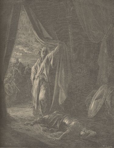 And, behold, as Barak pursued Sisera, Jael came out to meet him, and said unto him, Come, and I will show thee the man whom thou seekest. And when he came into her tent, behold, Sisera lay dead, and the nail was in his temples. Judges iv, 2-22.