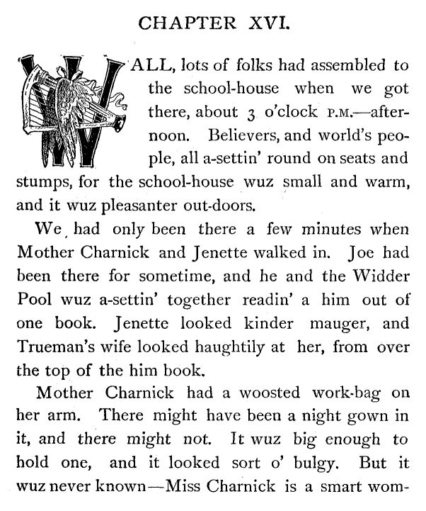 And then he shet the door quick, before I could say a word. But good land! I didn't care. I knew I could say what I wanted to with my faithful pen—and I am bound to say it.