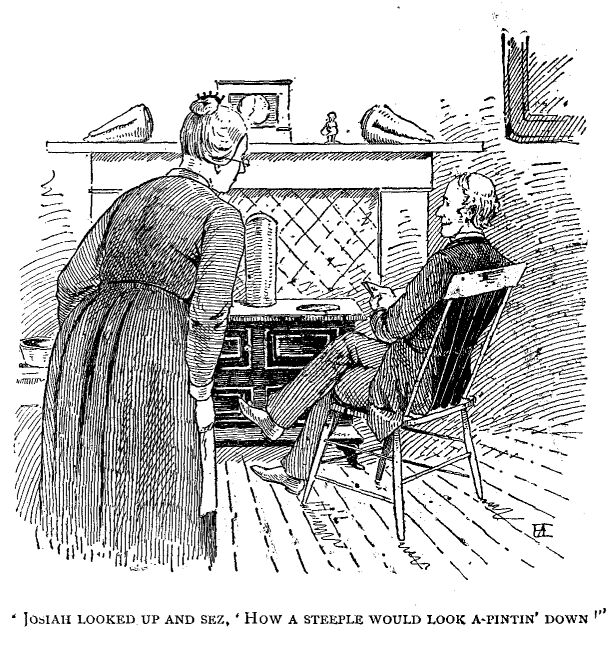 “Wall,” sez Josiah, as he started for the barn with the hen feed, “don't be too severe with the Meetin' House.”