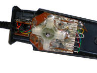 based on PCB tracks shorted by metal springs. My unit is probably not genuine Atari one. |