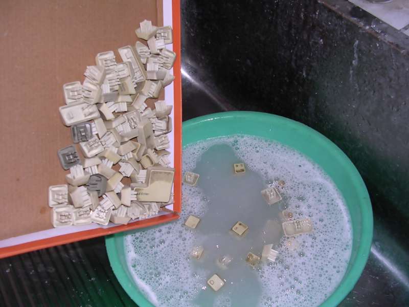 A method for cleaning keyboard's keycaps is similar as with other computer parts, but I just put them to bowl of