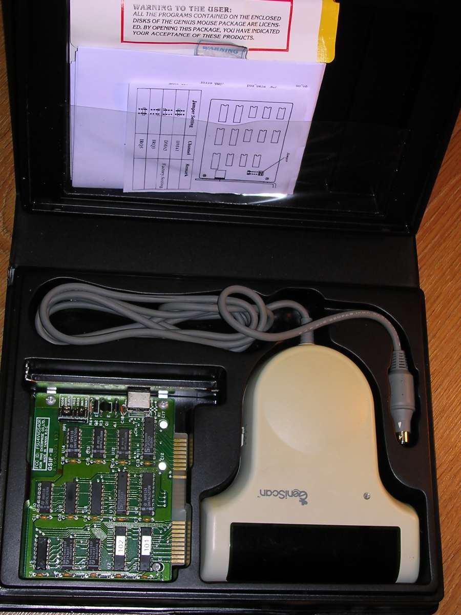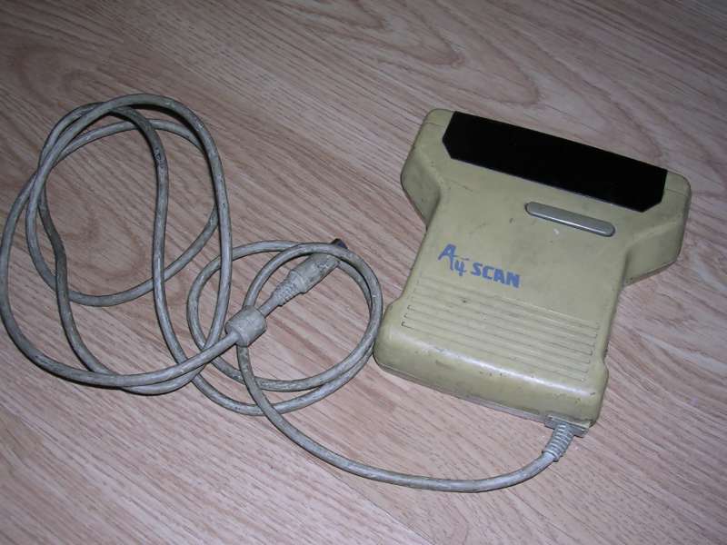 | Information: A typical early-1990s handheld scanner, with 400dpi maximum resolution. Although technically it's 4-bit grayscale (16 levels), it's usually classified as monochrome. Its LED illumination is green, so it's not so good with non-contrasting colours in documents. It is connected by ISA board and is supplied with own DR.GENIUS software for scanning and image processing. Some versions were supplied with OCR program. Everything packed in a nice portable box. It works under DOS, but there is an old Linux driver which requires some significant work to run in modern distributions... if modern distributions can run on ISA-based systems.