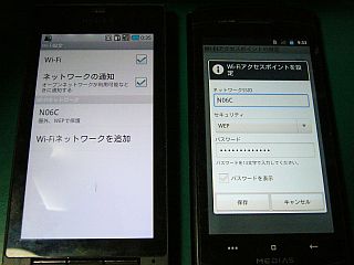 N-06C側でWEP(パスワード13桁)での「WiFiアクセスポイント:AP」の設定は出来たし、相手側のスマホ(docomo REGZAdocomo XPERIA)も「AP」を認識はしているらしいのに、上手く繋がらない?