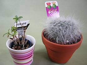 先日、DIY店へ家人の植木棚を買いに行ったついでに、並んでいた小鉢植えサボテンの傍に、妙な説明札があった鉢植えを買って来た。(\298税込み)