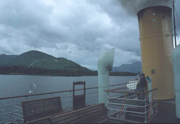 We were staying on Loch Fyne, near Inverary, so the nearest point we could catch the boat was at Luss pier. The following photos are AgfaChrome slides all taken with my Olympus OM1, with a f1.8 lens and have subsequently been scanned in on my CanoScan 2700F slide scanner. The exception is this first picture of the the Maid arriving at Luss, which was taken on my Wife's Kodak 110 camera, and the resulting print scanned in using my Genius ColorPage -SP2 flat bed scanner.