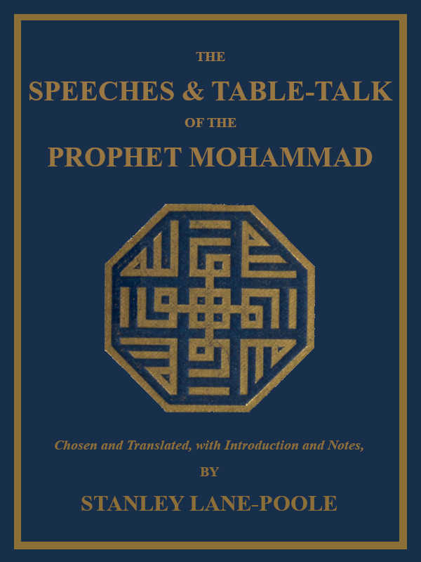 The Project Gutenberg EBook of The Speeches & Table-Talk of the Prophet Mohammad, by Muhammad ibn 'Abd Allah This eBook is for the use of anyone anywhere in the United States and most other parts of the world at no cost and with almost no restrictions whatsoever. You may copy it, give it away or re-use it under the terms of the Project Gutenberg License included with this eBook or online at www.gutenberg.org. If you are not located in the United States, you'll have to check the laws of the country where you are located before using this ebook. Title: The Speeches & Table-Talk of the Prophet Mohammad Author: Muhammad ibn 'Abd Allah Translator: Stanley Lane-Poole Release Date: December 8, 2018 [EBook #58426] Language: English Character set encoding: UTF-8 *** START OF THIS PROJECT GUTENBERG EBOOK SPEECHES OF PROPHET MOHAMMAD *** Produced by Fritz Ohrenschall, Emmanuel Ackerman and the Online Distributed Proofreading Team at http://www.pgdp.net